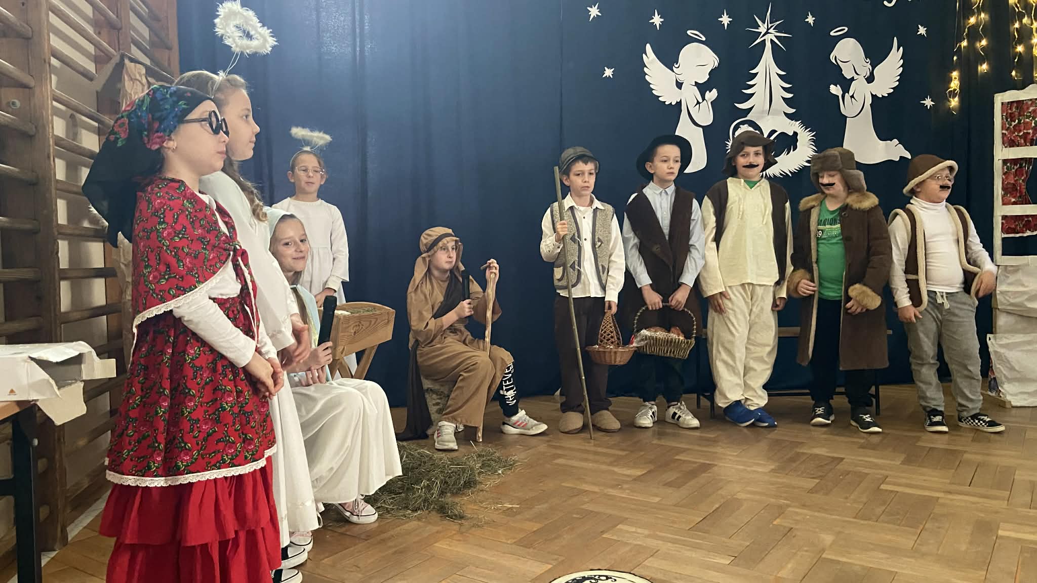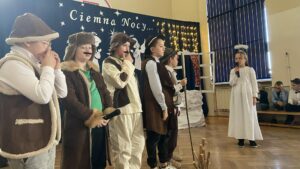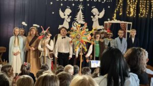 W piątek 19 grudnia w naszej szkole odbyły się jasełka, które wprowadziły nas w klimat Świąt Bożego Narodzenia. Uczniowie zaprezentowali piękne przedstawienie historii narodzin Jezusa, wzbogacone kolędami i pastorałkami. Serdeczne podziękowania dla wszystkich, którzy wzięli udział w przygotowaniach oraz dla naszych utalentowanych aktorów. To był niezapomniany czas pełen radości i wzruszeń!