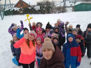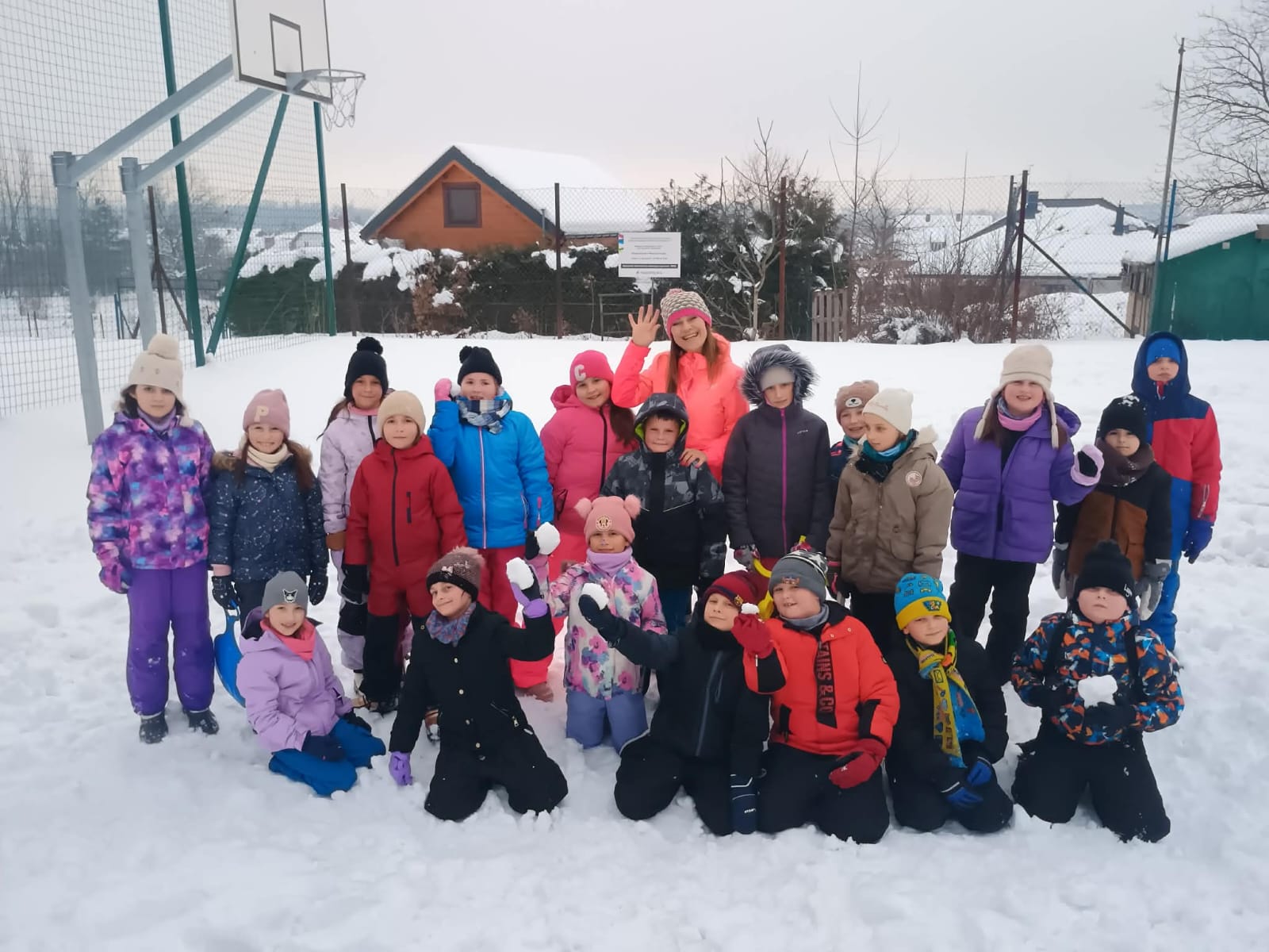 Zima to najlepszy czas na aktywność! Zamiast siedzieć w szkole poszliśmy na pobliską górkę i szkolne boisko. Radości nie było końca. Powstały piękne budowle, bałwany i aniołki na śniegu.