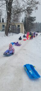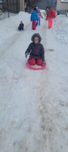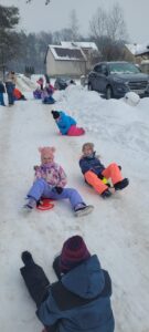 Jednak największą frajdę dzieciakom sprawiły zjazdy na sankach i ślizgach🛷