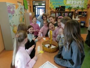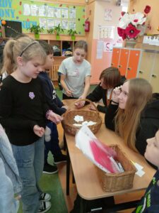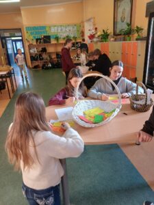 Czwartoklasiści natomiast tworzyli kolorowe plakaty promujące Światowy Dzień Tabliczki Mnożenia. Wszyscy uczniowie świetnie się bawili, a przy okazji doskonalili swoje matematyczne umiejętności oraz współpracę w grupie.