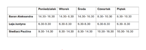 Świetlica pracuje od poniedziałku do piątku 6.30- 16.30